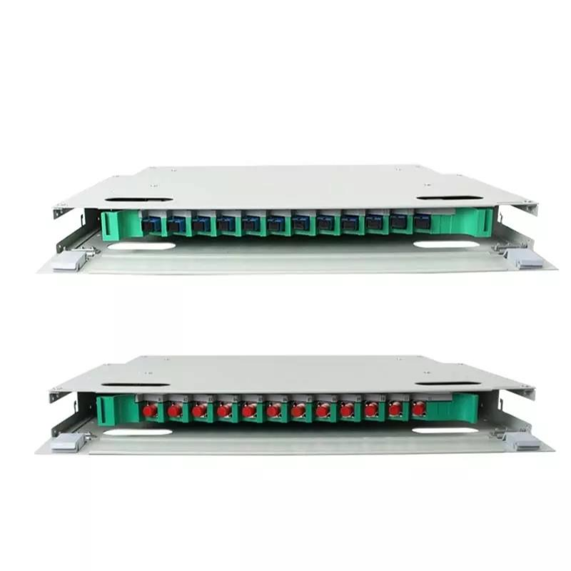 More sophisticated technology structure adopts galvanized passivation of cold rolled steel sheet and surface spray coating technology, optical fiber distribution plate with mixed flame retardant materials of plastic material, light and flexible, and sturdy and durable.Large diameter coiled ring design make the tail fiber and jump fiber radius of curvature of every place in more than 40 mm